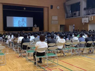 ハッピーウイークの学校公開日でした。どのクラスも、幸せを考える授業を公開しました。みんなで輪になって考えたり、道徳の授業をしたり、そして、午後は、NPO法人いのちをバトンタッチする会の鈴木中人さんに来ていただいて、「いのちの授業」を行っていただきました。全校児童と職員、保護者で体育館で行いました。真剣に聞いて、そして、授業後の振り返りでは、子どもたち一人ひとりの想いの溢れた感想が書かれていました。