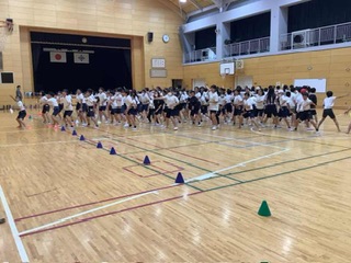 運動会に向けて、5、6年生合同でソーラン節の練習が始まりました。5年生にとって、低学年の頃から憧れていたソーラン節、そして、6年生にとっては、5年生をリードする責任感。全員の意欲が体育館いっぱいに広がっていました。がんばれ! おつひの高学年。