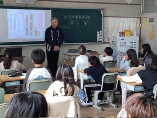 3年生 赤煉瓦の建物の説明に来てくださいました。使われている煉瓦のこと、カブトビールの歴史、半田の産業の結びつきなど教えていただき、見学が楽しみになりました。