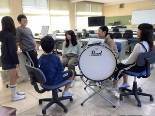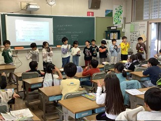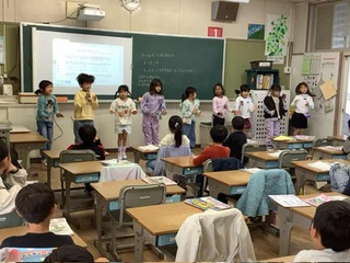 1年生 学習発表会の準備 おもちゃのチャチャチャを歌ったり踊ったりリズム打ちをしたりしていました。よく考えて工夫していました。