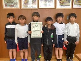 表彰です。サッカーで優勝しました。おめでとうございます。