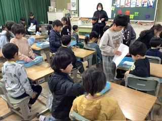 来年度入学してくる子どもたちのための入学説明会が行われました。新1年生のために、現在の1年生が準備した発表をしたり、ペアになって一緒に遊んだりしていました。