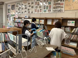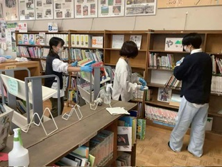 図書館サポーターの皆さんが、図書室の本の点検をしてくださっています。1年に1回、全ての本をチェックします。大変な作業ですが、サポーターの方がしてくださいます。ありがとうございます。