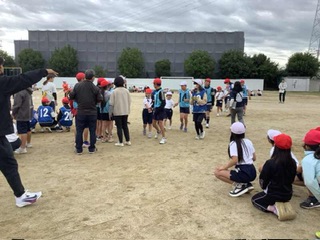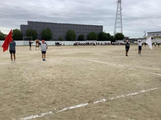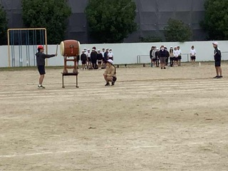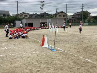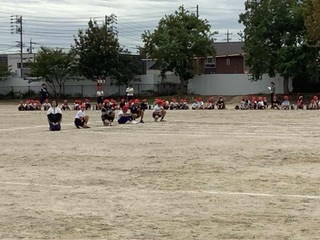 運動会の全体練習をしました。エール交換も元気に行いました。