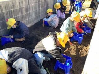 1年生 チューリップの球根を植えました。春にきれいに咲いて、新1年生を迎えてくれますね。